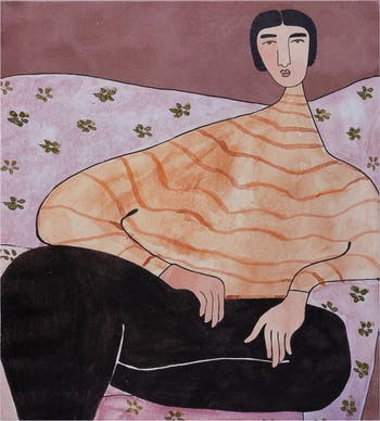 - This contemporary piece of wall art showcases a hand-painted image of a resting woman on canvas