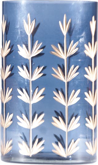 Introduce a touch of sophistication to seasonal decor with this Hand-Painted Cut Glass Candle Holder/Vase featuring a Botanical Design. Measuring 4 inches round by 6.5 inches high, it showcases a stunning navy color with a gold finish that enhances its intricate botanical patterns. Perfect for adding elegance to tables, mantels, or holiday displays, this piece brings a unique charm to both autumn and winter settings. Crafted from durable glass, this candle holder/vase promises durability and timeless beauty. Elevate any space with this exquisite decor piece, designed to captivate and impress.