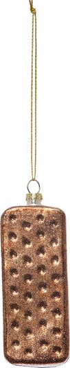 Hand-Painted Glass Ice Cream Sandwich Ornament with Glitter, Brown and White