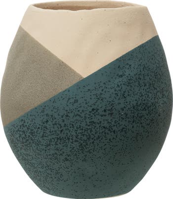 This splendid hand-painted stoneware planter has a gorgeous multi-colored and multi-textured finish. It adds a modish contemporary touch and will look great on a table, mantle, dresser, or bookshelf.
