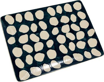 Hand-Painted Stoneware Platter with Wax Relief Dots, Blue and White