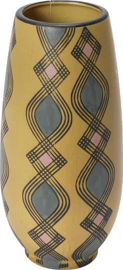 - This bold stoneware vase showcases an intricately hand painted 2 tone geometric pattern