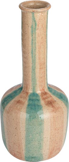 Hand-Painted Terra-cotta Vase with Tall Neck, Crackle Glaze