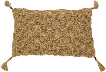- This global-inspired lumbar pillow showcases intricately woven cotton and jute macramé construction adorned with eclectic tassels and mango wood beads