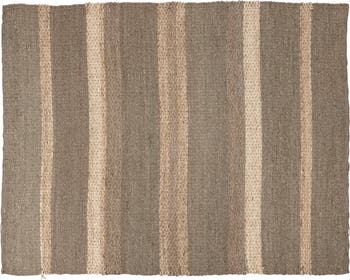 - Hand-woven seagrass and corn husk area rug in a striped pattern