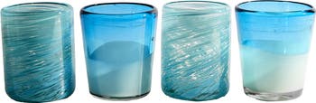 Elevate your dining experience with our exquisite Aqua Mexican Glassware Set, handcrafted sustainably by skilled artisans in Jalisco, Mexico. Each glass is meticulously handblown using only recycled glassware, making each piece one-of-a-kind. Mexican restaurants always have stunning glassware - so we made some of our own, with a twist. We work with a talented team of glassblowing artisans in Jalisco, Mexico to sustainably handcraft each piece of glassware. Each glass is handblown, and the color is applied while the glass is molten hot. Then, the glassware is cooled slowly in a hot oven to avoid shattering. There are no two identical pieces! The aqua set comes with 2 blue-white gradient glasses, and 2 blue swirl glasses. We partner with Javier Gutierrez Esponsa and his team of dedicated glassblowers in Tonala, Mexico. Glassblowing is an art that takes up to 20 years to master, and Javier’s team has glassblowers of different skill levels. They share learnings, and experiment with glass techniques to produce stunning new work.