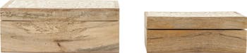 - Beautiful designs are carved into the tops of these mango wood boxes