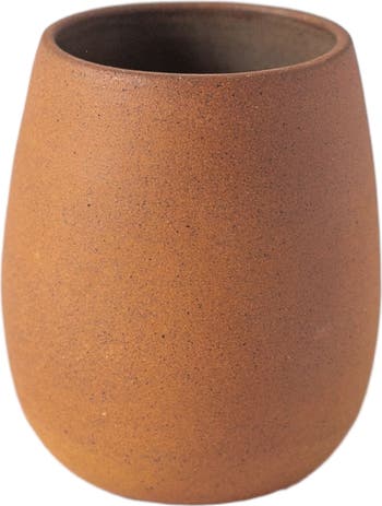 Handcrafted 10 oz glass made from ceramic and local clay. Glazed only in the inside, the final earth tones and textures are the result of the different combination of clays exposed to the heat of the kiln fire.