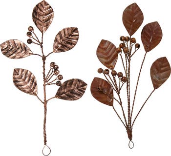Handcrafted Metal Leaves and Berries Decorative Sculptures