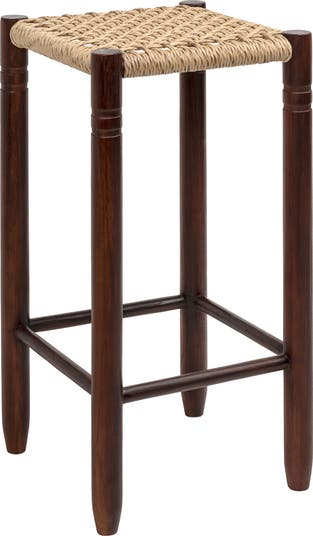 Handcrafted Wood Backless Indoor/Outdoor Bar Stool with Synthetic Woven Seat