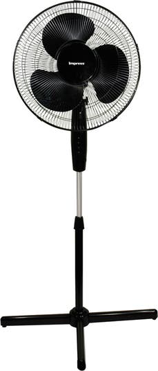 The Impress Handi-Fan 16in Oscillating stand fan has a built in handle for easy portability. With three speeds from low, medium, to high, you can customize the airflow power and adjust to the size of the room you are in. 90 degree oscillation spreads air in more directions to cool your space down quicker. Whisper quiet operation also allows you to have consistent air flow without the added noisiness. Item Dimensions: 4.50" x 21.00" x 52.00" Item Weight: 5.00lbs