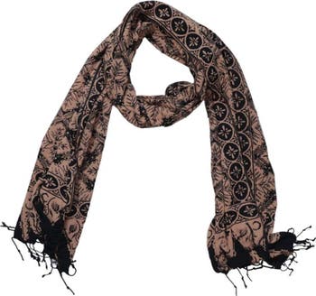 Kasih Co-op Handmade Batik Scarf, Main, color, Black Brown Harvest