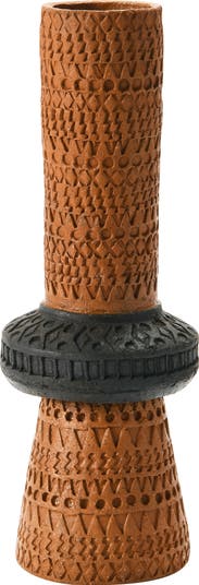 - Handmade, this debossed terracotta vase features a black and terracotta pattern, and is a beautiful statement piece to hold any type of florals