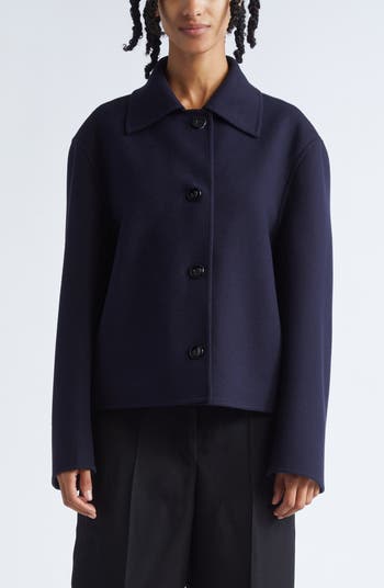 A masterclass in modern tailoring, this short jacket showcases the Milanese label’s signature restraint and craftsmanship. Handmade in Italy from decadent double-faced wool, its clean lines exude understated luxury, while the sculptural silhouette is punctuated by gleaming oversized buttons.