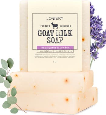 SOAP MADE WITH REAL ORGANIC GOAT MILK - Our goats milk soap bar selection is wonderfully blended with soothing scents and ingredients to nurture your skin the natural way. Each batch of goat soap is made using real organic goat milk. All natural bar soap producing a creamy, delicate lather. ORGANIC SHEA BUTTER & RICH NATURAL OILS – Hormone-free organic goat's milk soap made with organic Shea Butter, along with luxurious plant-based oils from coconut, soya, and olive. This rich goatmilk soap blend is deeply nourishing and leaves hands feeling silky smooth and clean. MOISTURIZING HAND SOAP FOR SENSITIVE SKIN - A goat milk soap bar containing REAL goat milk, not powdered. Our goat milk hand soap is carefully handcrafted for sensitive skin care and moisturization. It gently hydrates and soothes dry or itchy skin without the harsh chemicals. SOOTHING & RELAXING SCENTS - Our goats milk bar soap is handmade and available in 5 exquisite scents: Oatmeal, Eucalyptus Lavender, Moroccan Vanilla, Hydrangea Rose, and Patchouli Sandalwood. All scents contain a base of ground oatmeal in the soap for gentle exfoliation. HANDMADE WITH LOVE IN THE USA - Every bar of our soap is crafted by hand right here in the USA, with lots of love and care. We're proud to bring you a product that's great for your skin, and also homegrown. Lovery is dedicated to creating luxurious, natural skincare products that nourish your body and soul.