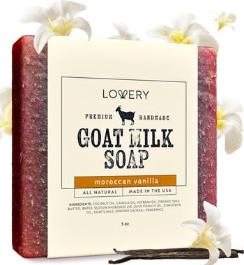 SOAP MADE WITH REAL ORGANIC GOAT MILK - Our goats milk soap bar selection is wonderfully blended with soothing scents and ingredients to nurture your skin the natural way. Each batch of goat soap is made using real organic goat milk. All natural bar soap producing a creamy, delicate lather. ORGANIC SHEA BUTTER & RICH NATURAL OILS – Hormone-free organic goat's milk soap made with organic Shea Butter, along with luxurious plant-based oils from coconut, soya, and olive. This rich goatmilk soap blend is deeply nourishing and leaves hands feeling silky smooth and clean. MOISTURIZING HAND SOAP FOR SENSITIVE SKIN - A goat milk soap bar containing REAL goat milk, not powdered. Our goat milk hand soap is carefully handcrafted for sensitive skin care and moisturization. It gently hydrates and soothes dry or itchy skin without the harsh chemicals. SOOTHING & RELAXING SCENTS - Our goats milk bar soap is handmade and available in 5 exquisite scents: Oatmeal, Eucalyptus Lavender, Moroccan Vanilla, Hydrangea Rose, and Patchouli Sandalwood. All scents contain a base of ground oatmeal in the soap for gentle exfoliation. HANDMADE WITH LOVE IN THE USA - Every bar of our soap is crafted by hand right here in the USA, with lots of love and care. We're proud to bring you a product that's great for your skin, and also homegrown. Lovery is dedicated to creating luxurious, natural skincare products that nourish your body and soul.