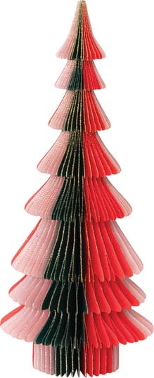 - A whimsical and elegant handmade paper folding tree, crafted with a captivating honeycomb design and accented with a touch of shimmering gold glitter in red, green, and pink