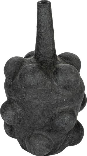 - A stunning and elegant paper mâché vase that has a black color and a round shape with a bubble-like design that creates a smooth and glossy effect
