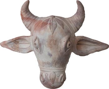 - Add a touch of rustic charm to any space with this handmade terra-cotta cow head wall décor in a whitewashed finish