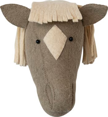 - A cozy and cute wall hanging that features a handmade wool felt horse head in brown and cream color