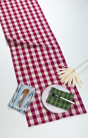 Archive New Yrok Handwoven Abigail Cranberry Plaid Cotton Table Runner, Main, color, Red