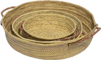 These beautiful woven trays are made of palm fibre with fine leather handles to bring a warm atmosphere to your home. They can be used as decoration and to keep your things in order. They are handmade in Marrakech, Morocco by a women's cooperative.