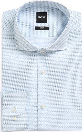 Ace the 9-to-5 (or 9-to-whenever) in a stretch-cotton dress shirt that exudes modern precision with a slim fit and curved hem.
