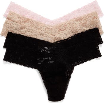Classic colors add versatility to these low-rise thongs made from soft and stretchy lace, which fits comfortably and won't show through clothes.