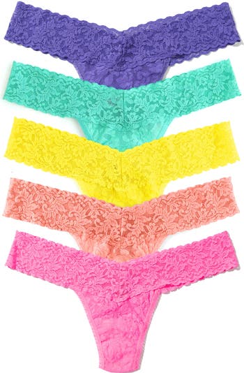 Made in the USA of soft, stretchy lace, these low-rise thongs feel great on and don't show lines under your clothes.