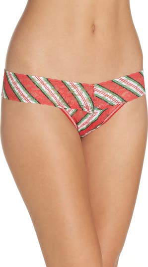 Christmas-striped lace gives super-stretchy ease and a sleek, nearly imperceptible fit to this low-rise thong.
