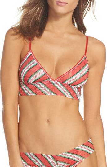 A striped-lace bralette is lightweight and stretchy for exceptional, lounge-worthy comfort.