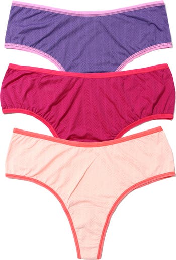 Soft and stretchy chevron jersey makes these high-rise thongs a comfy choice for getting active or just relaxing at home.