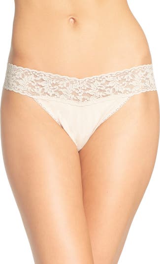 Stretchy floral lace trims a supersoft jersey thong designed to feel great on and disappear beneath clothes.