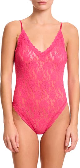 Made from soft and comfy floral stretch lace, this bodysuit has retro high-cut legs and a thong back to work as a foundation or a standalone piece.