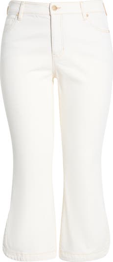 Whether you're off to a concert or brunch with friends, these cropped flare jeans will have you covered with their contrast stitching and curved tulip hems.