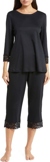 A spunky cropped cut and pretty lace are a lovely pairing on this dreamy-soft cotton pajama duo.