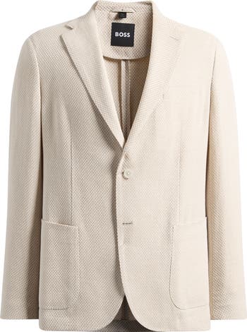 A dot-textured cotton-linen blend relaxes the formality of a sport coat that's tailored with softly constructed shoulders and fitted in the waist for a classic silhouette. Finished with patch pockets and traditional pick stitching, it makes an easy-wearing complement to any elevated look.