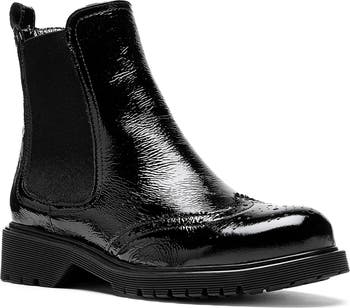 Wingtip styling and brogue perforations bring distinct elements to a waterproof leather Chelsea boot grounded by a foam-cushioned footbed and rubber lug sole.
