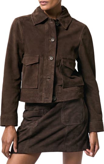Elevate your ensemble with this boxy cropped jacket updated in rich buttery-soft suede.