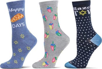 Bring some personality to your look with these Hanukkah-themed crew socks made of an ultrasoft lightweight knit.