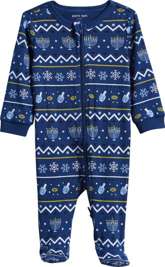 A Fair Isle pattern covers these footed pajamas made from breathable organic cotton and secured with a two-way front zip to make changing a breeze.