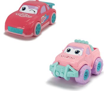 Get ready, get set, go! The rally can really get going with the Happy Friends! The toy with the cheeky googly eyes from Dickie Toys gives young children their first insight into the world of sports cars and off-road vehicles. Each brightly colored toy car has its own character: the beefy cross-country vehicle looks challenging and the sports car impish. All parts of the Happy Series vehicles are manufactured with young children in mind and are tailored to the needs of inexperienced children's hands. They are easy to grasp and glide over the floor thanks to the freewheel mechanism. Make your child happy with Dickie Toys and guarantee rallying fun in the playroom. Let your child challenge you to an exciting race through the living room! WARNING: CHOKING HAZARD -- Small parts. Not for children under 3 yrs.