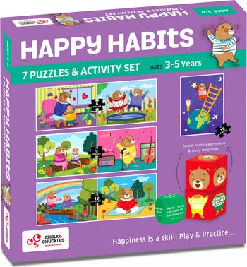 Help nurture healthy happy habits with these 7 puzzle activities. Also includes flash cards, character pieces, and question dice.