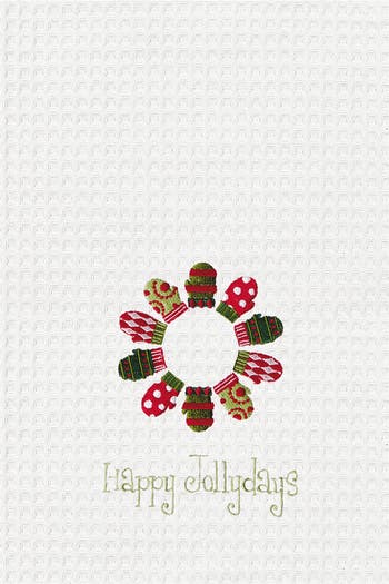 Celebrate the holiday season with a decorative yet practical addition to your home—the Christmas “Happy Jollydays” Waffle Weave Dishtowel. Designed with a festive glove mitt wreath motif and cheerful holiday message, this towel brings personality, charm, and seasonal spirit into your kitchen or bathroom décor. The waffle weave construction makes it highly absorbent and dependable for everyday use, while its decorative details allow it to double as a stylish accent. Whether drying dishes, cleaning up small spills, or hanging on display, it blends function with festive design. Its versatile look ensures it pairs easily with traditional Christmas decorations, winter-themed tableware, or other holiday linens. Beyond its use in the home, this towel also makes a thoughtful Christmas gift or stocking stuffer, perfect for family, friends, neighbors, or hosts. Durable and reliable, it offers both charm and quality, making it a piece you can enjoy year after year.