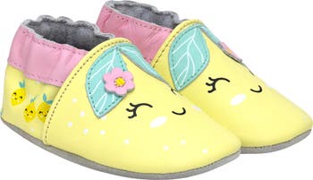 This adorable appliquéd crib shoe is designed for a roomy, comfortable fit with a wide toe box that provides extra space for feet to grow and move freely. The slip-resistant suede sole is ultraflexible, promoting a full range of motion and healthy foot development.