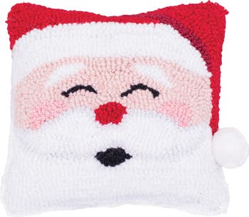 Happy Santa Claus Small/Petite Christmas Hooked Accent Pillow, 8" x 8"