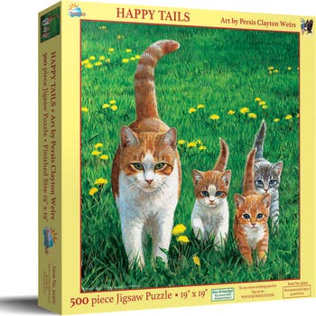 Happy Tails 500 pc Jigsaw Puzzle by SunsOut - 500 Piece Jigsaw Puzzle - Completed Size: 18" x 24" - Puzzle Artist: Persis Clayton Weirs - Interlocking Pieces and Durable Construction: SunsOut jigsaw puzzles feature interlocking pieces that fit securely, making assembly easier and reducing frustration. -Ages: 15 years and older - Perfect for adults and seniors. SunsOut puzzles ensure high manufacturing standards ensuring their commitment to quality and customer service. - SunsOut puzzles use soy based inks, high quality puzzle board. As this is a jigsaw puzzle: assembly is required and batteries are not required.