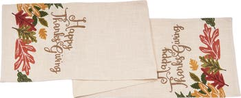 Bring home the warmth of Thanksgiving with this beautiful Happy Thanksgiving Leaves table runner featuring a warm harvest neutral background and autumnal foliage to give your festive mood a boost. Complete with a cursive text design reading 'Happy Thanksgiving', it's perfect for the center of your table or as a special Thanksgiving decoration.