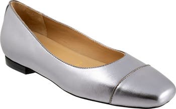 A squared-off cap toe and piping trims bring sharp angles and dimension to a leather flat featuring optimal underfoot cushioning for daylong comfort.