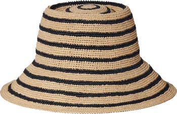 An elegant stripe pattern charms this sunny bucket hat crafted from malleable raffia straw for a stylish fit that's always comfortable.